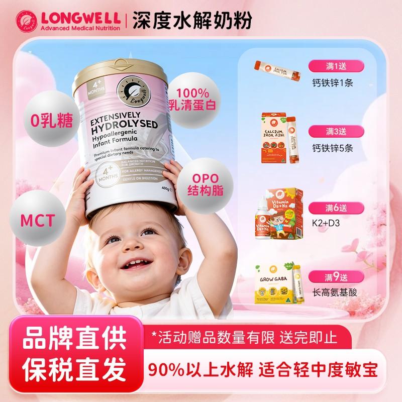 Longwell婴儿深度水解配方奶粉400g/罐 6罐 赠K2+D3 1瓶