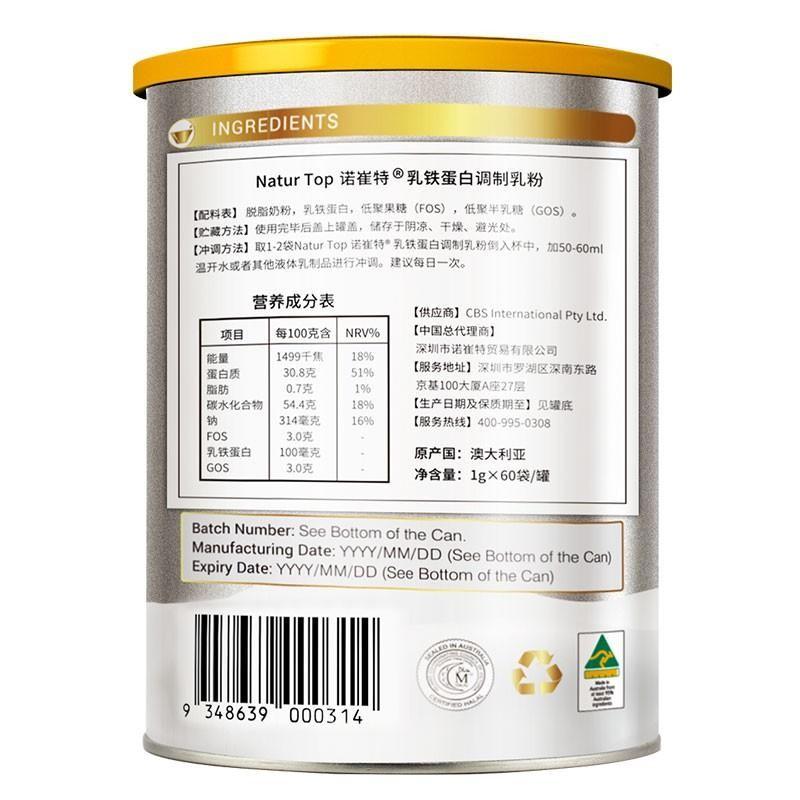 【买五赠一同款】Natur Top诺崔特 澳洲原装进口 乳铁蛋白调制乳粉 60g